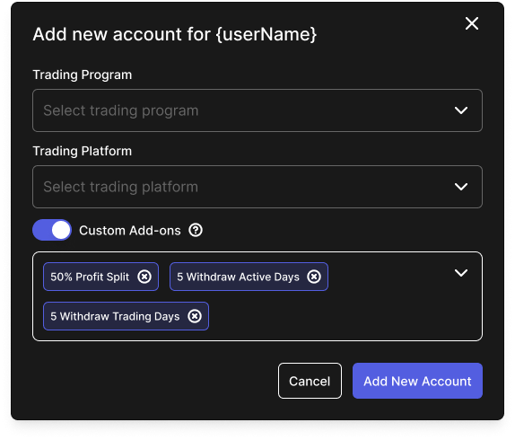 This step is optional and can be tailored based on your firm's program structure or specific trader requirements.