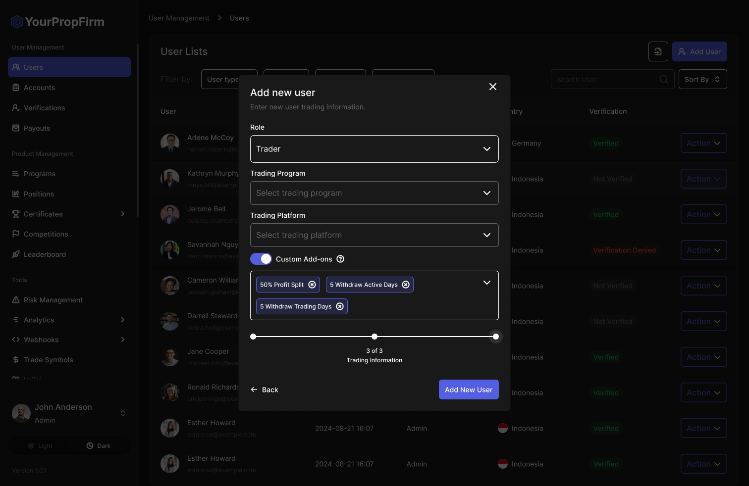 <figure><img src="https://835503362-files.gitbook.io/~/files/v0/b/gitbook-x-prod.appspot.com/o/spaces%2FZxKMBw1IB53ZJ2sltFPC%2Fuploads%2FlWZKYysapz1vMc0I8xYh%2Fusers%20(add%20user%20modal%203)%20-%20trader%20role%20-%20add-ons%20implemented.png?alt=media&#x26;token=3bc05269-a0bb-4158-be0c-06bfef7b24a3" alt=""><figcaption></figcaption></figure>