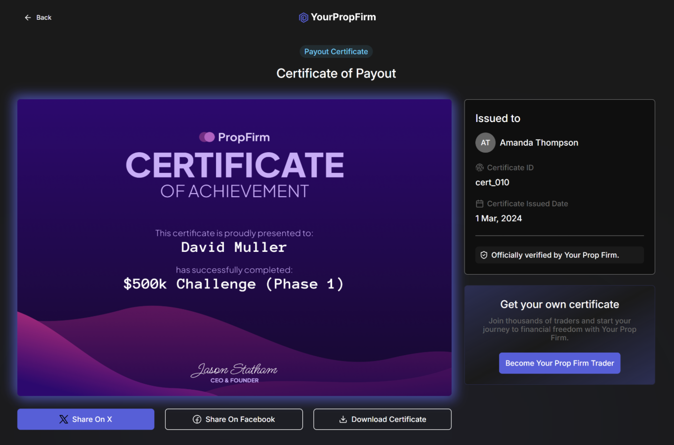* **Certificate Type** - Classification as either `Payout` or `Achievement` certificate